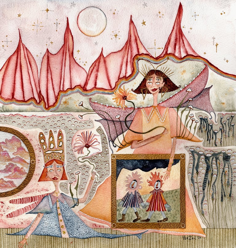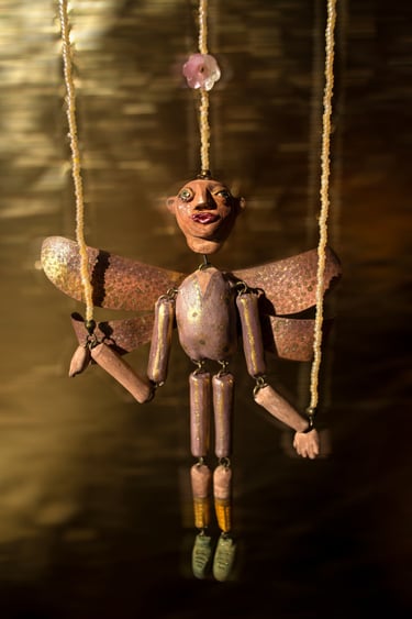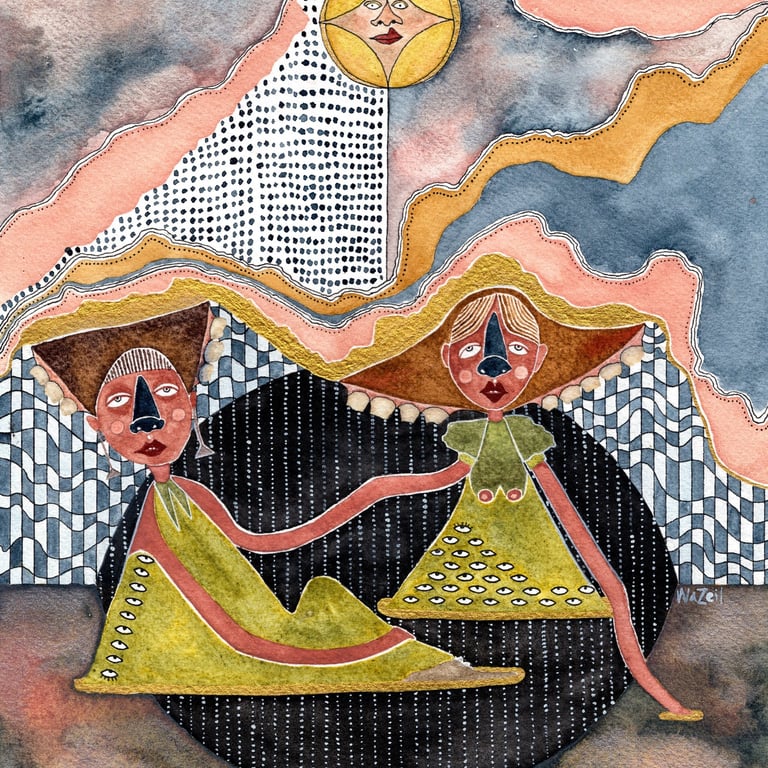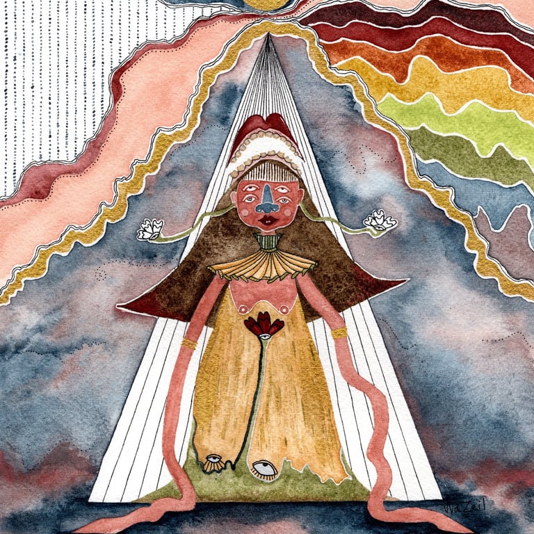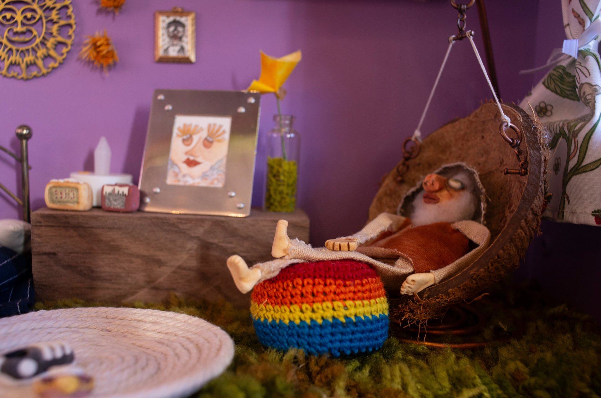 an Egyptian dreamweaver creating whimsical worlds through watercolor paintings, textiles, miniature doll-making & puppetry