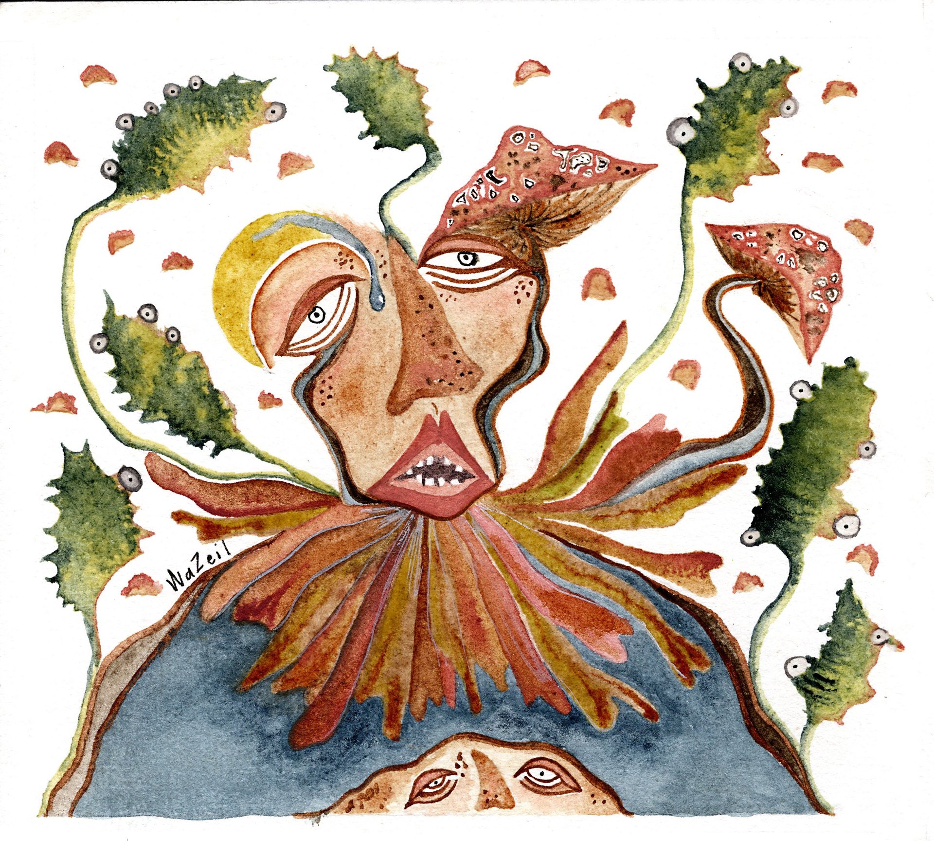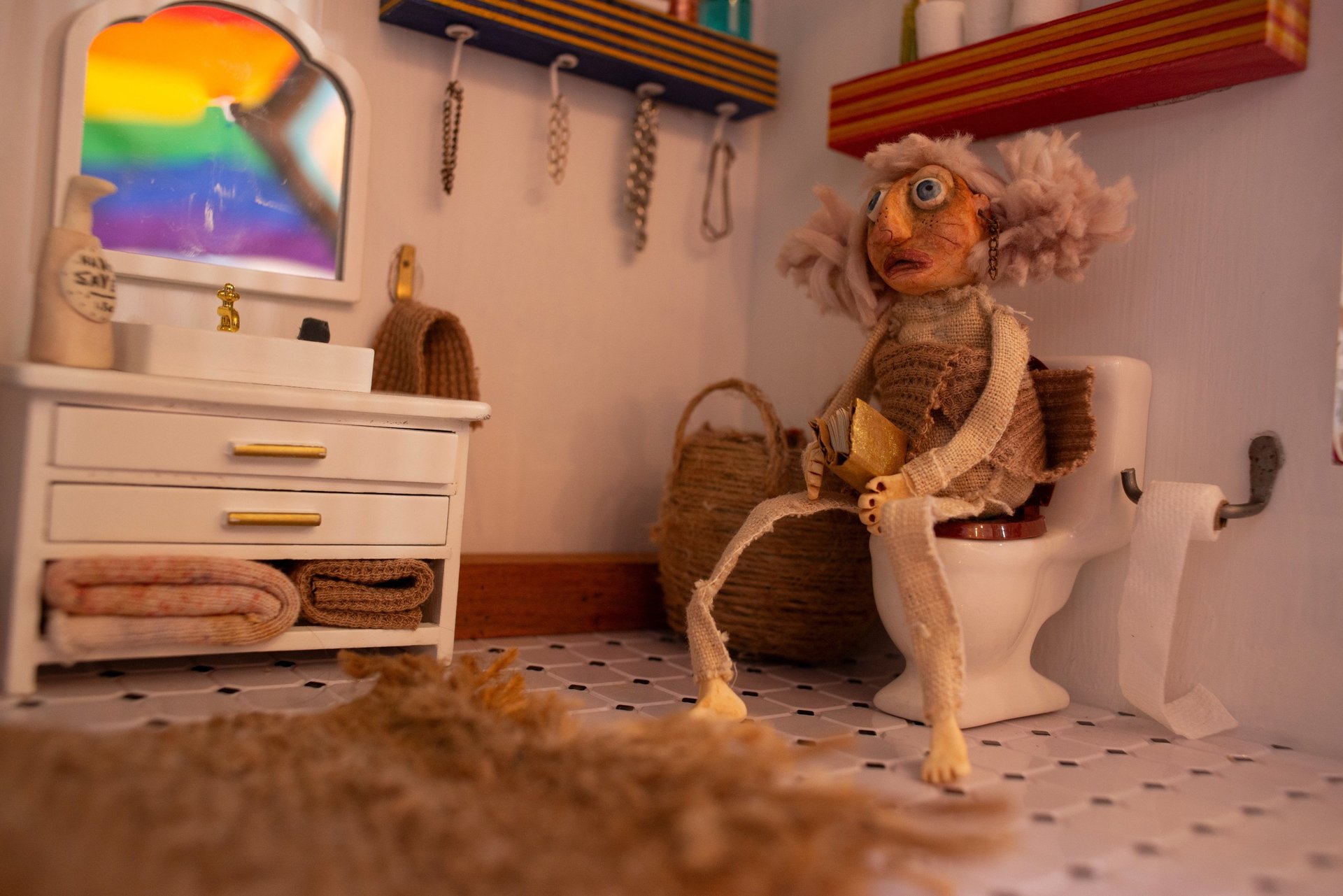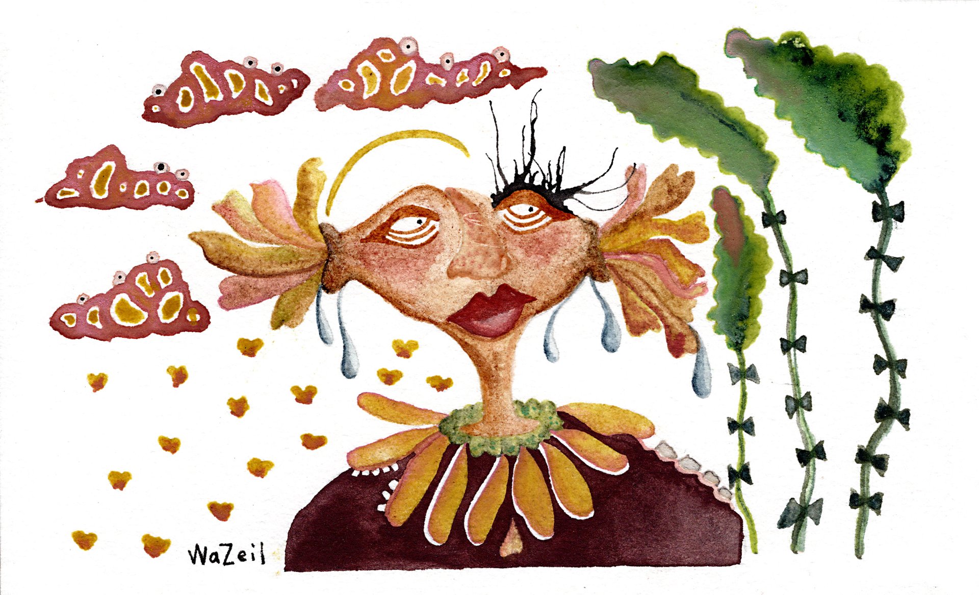 an Egyptian dreamweaver creating whimsical worlds through watercolor paintings, textiles, miniature doll-making & puppetry