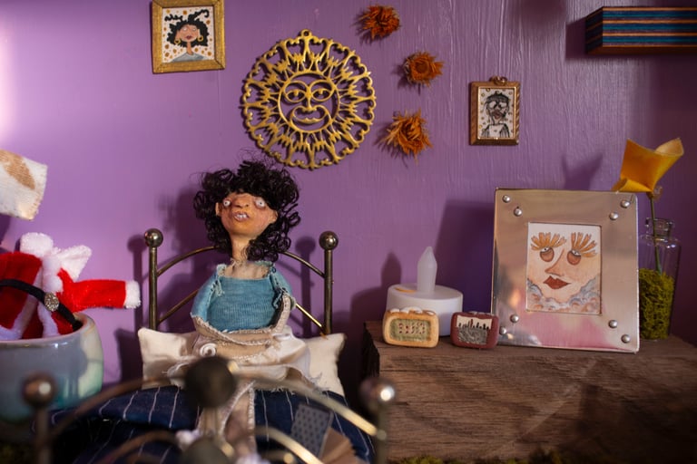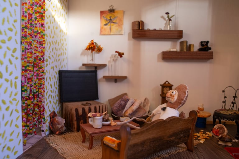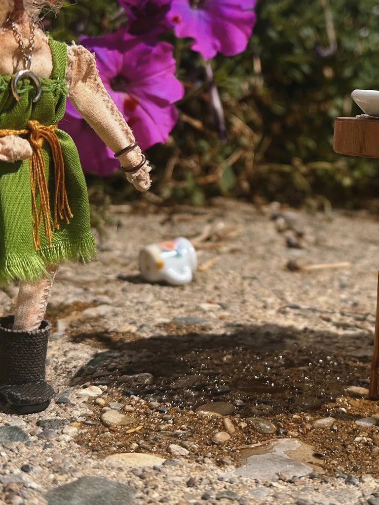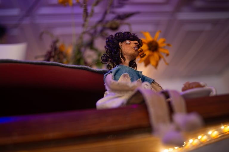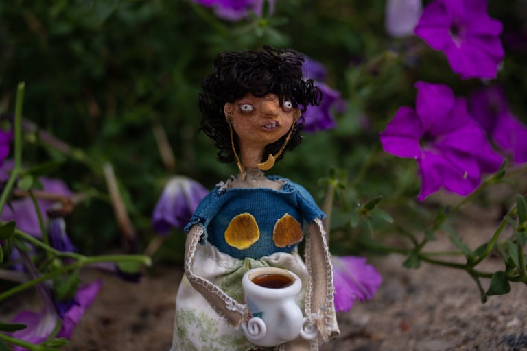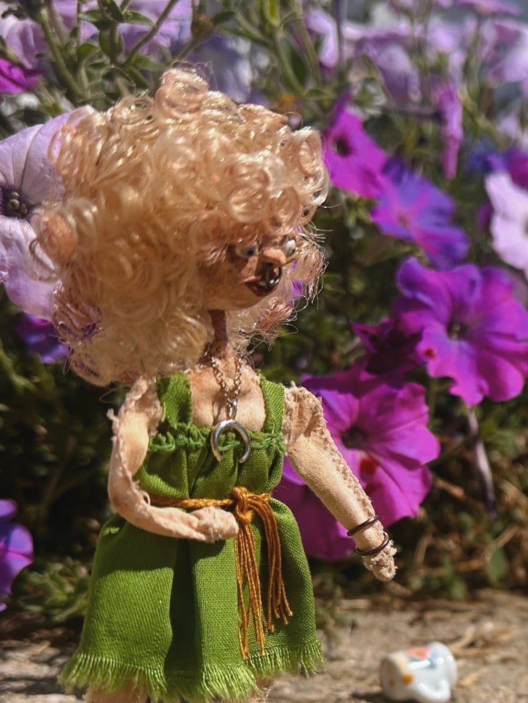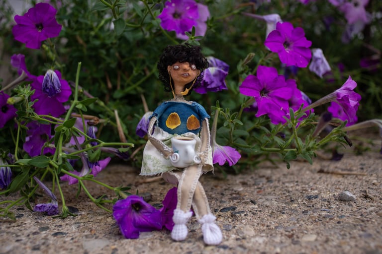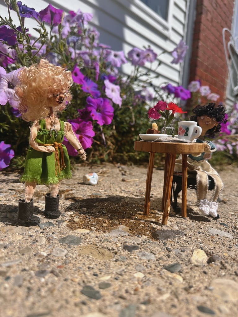 juxtaposed characters with qualities that present surreality rather than literal reality. dwelling in a renovated barbie dream-home made especially for them, each doll is curiously formed with paper clay, painted with handmade paints then adorned with naturally dyed textiles and other various repurposed or up-cycled materials. always finding themselves in precarious situations.