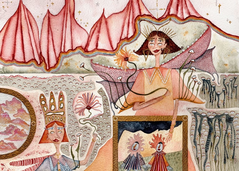 natural paint and ink alchemist; i make all of my own palettes of watercolor paint and ink from soil scooped during my travels across the US, produce waste from grocery stores and local farms, backyard grown flowers, wild harvested plants, nuts and tree parts.