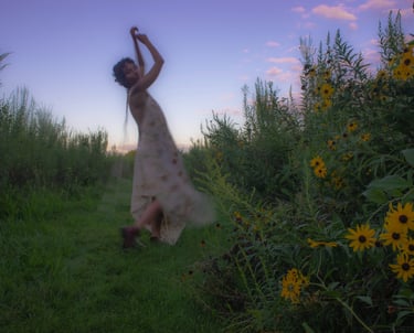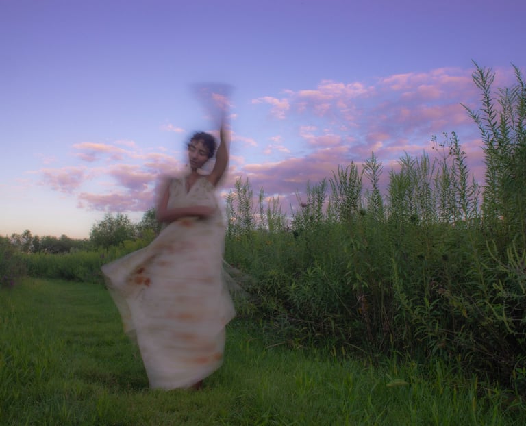 Through creating and clowning, I explore the freedom of expressing my bisexuality and heritage, the importance of compassionate connection, the value of play without purpose and the power of continuous curiosity; all to nurture and heal the inner child. My practice illustrates the symbiotic relationship between humans and nature, highlighting how all our lives are delicately and beautifully intertwined. In every brushstroke and stitch, my work sparks moments of wonder and whispers stories formed with intention.